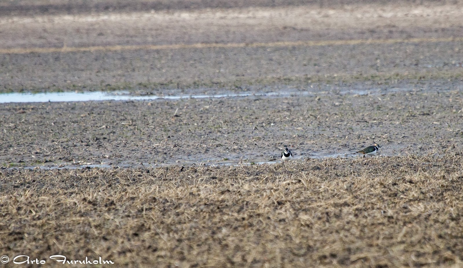 | Kaksi töyhtöhyyppää Kyläsaaren pelloilla |